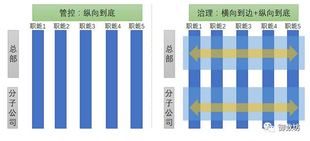 从作用方向来看,用“数据管控”一词替代“数据治理”,加剧了这种纵向管控的文化,非常强调“总部定标准、下属公司执行”。由此,企业做所谓的“数据管控”项目,从某些业务条线、某些系统出发定义了不少数据模型、数据标准,也许能够实现“纵向到底”的管控深度。但由于跨业务、跨系统的横向协同不力,过于强调纵向管控实际上建立了一个又一个的“数据烟囱”,根本无法实现“横向到边”的顺畅协同,数据质量问题仍然多发、企业各个职能也就无法实现高效运转。