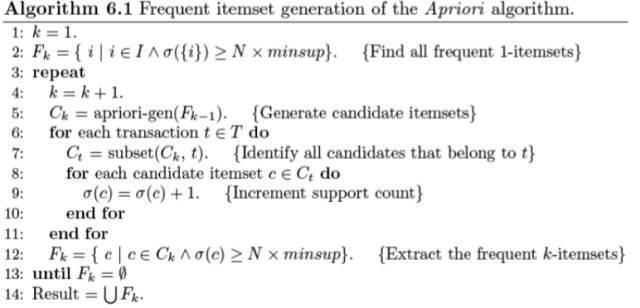 因此为了控制需要计算支持度和置信度的规则数量,目前关联规则的挖掘过程大致可以总结为两步: