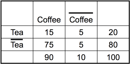 下表是一项对爱喝咖啡的人喝爱喝茶的人之间关系的分析。