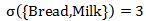项集在事务中出现的次数。例如,{Bread,Milk}这个项集在事务库中一共出现了3次,那么它的支持度计数就是3,