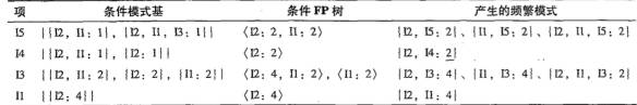 对所有项执行上述步骤,我们可以得到所有项产生的频繁项集: