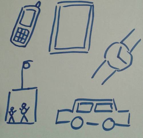接下来是讨论计算机。所有的孩子开始讨论他们父母的笔记本电脑(孩子们一遍又一遍提到同样的事情真的很可爱)。讨论了一会儿之后,我打断他们,指出在各种地方有很多计算机——例如智能手机、手表、还有一些在汽车和电梯里。我把每个提到的东西都画下来,并且用几句话讨论了计算机在各种情况下应用在哪里。