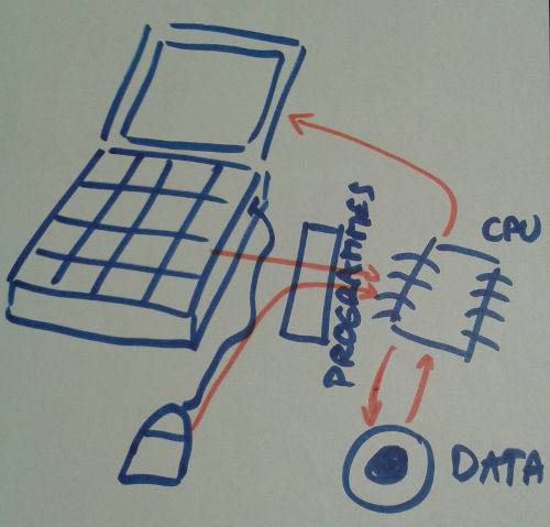 下一个话题是计算机如何工作——当然阐述得比较粗糙。我所能告诉他们的是: