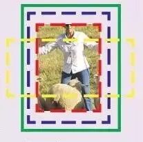 观察一个输入区域,我们可以得到一个更适合隐含对象的边界框,即使该对象仅部分可见。下图显示了在只看到一部分对象时,得出真实边界框(ground truth box)的可能性。因此,可以训练回归量,来观察输入区域,并预测输入区域框和真实框之间的 offset △(x,y,w,h)。如果每个对象类别都有一个回归量,就称为特定类别回归量,否则就称为不可知类别(class-agnostic,一个回归量用于所有类别)。边界框回归量经常伴有边界框分类器(信度评分者),来评估边界框中在对象存在的可信度。分类器既可以是特定类别的,也可以是不可知类别的。如果不定义首要框,输入区域框就扮演首要框的角色。