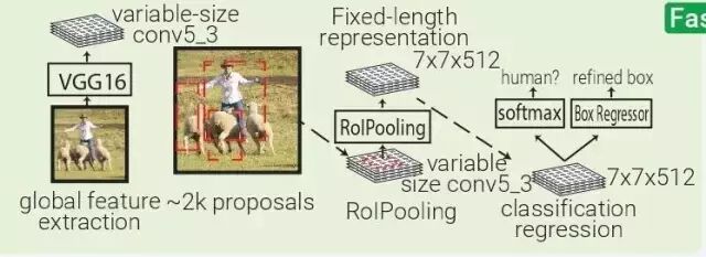 Fast RCNN:Fast RCNN本质上源于SPPNET,不同的是 Fast RCNN 带有训练好的特征提取网络,用 RolPooling 取代了 SPP 层。