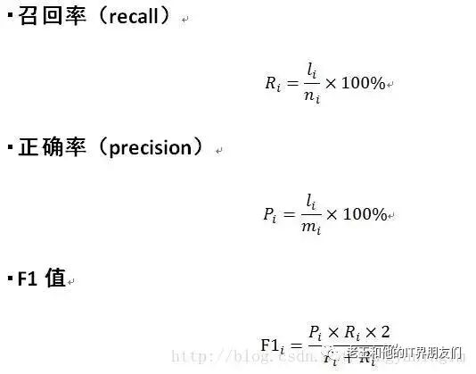 对第i个类别,其准确率和召回率分别定义如下:li表示分类的结果中被标记为第i类别且标记为正确的文本个数,mi表示结果中表示被标记为第i个类的文本个数,ni表示被分类的文本中实际属于第i个类别的样本个数。