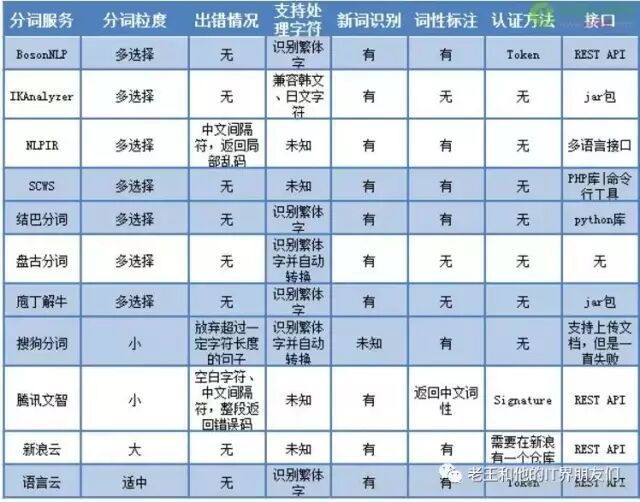 主流分词概况: