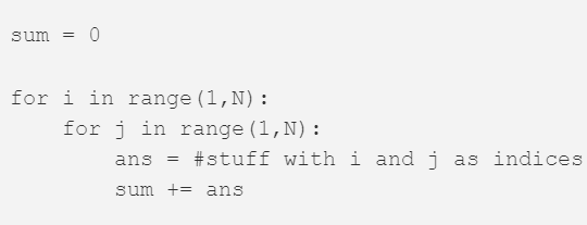 Σ 符号表示求和,并且在该邻接矩阵 A 中的每一行和列上进行迭代。如果你对这个符号不熟悉,可以将 i, j = 1 和 N 理解成编程语言中的 for-loop。在 Python 里面,可以写成这样: