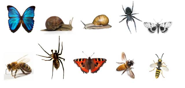 完成了吗?尽管这里并不一定有所谓的「正确答案」,但一般来说我们可以将这些虫子分成四组:蜘蛛、蜗牛、蝴蝶/飞蛾、蜜蜂/黄蜂。