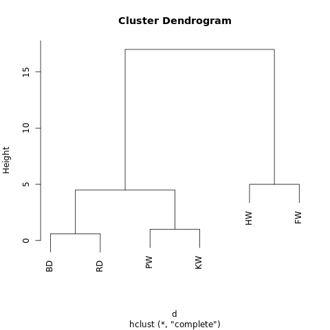 通过树型图的结构,我们能更深入了解数据集的结构。在上面的案例中,我们看到了两个主要的分支,一个分支是 HW 和 FW,另一个是 BD、RD、PW、KW。
