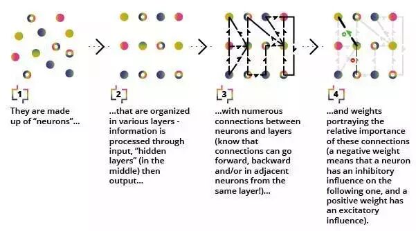 3、神经元和层之间存在数量巨大的连接(这些连接可能是向前的、向后的,甚至同一层内相邻的神经元之间也会存在连接)