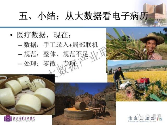 最后我想讲一下,从大数据来看医院的电子病历,现在的医院相当于一个农民在种地,都是手工的操作。