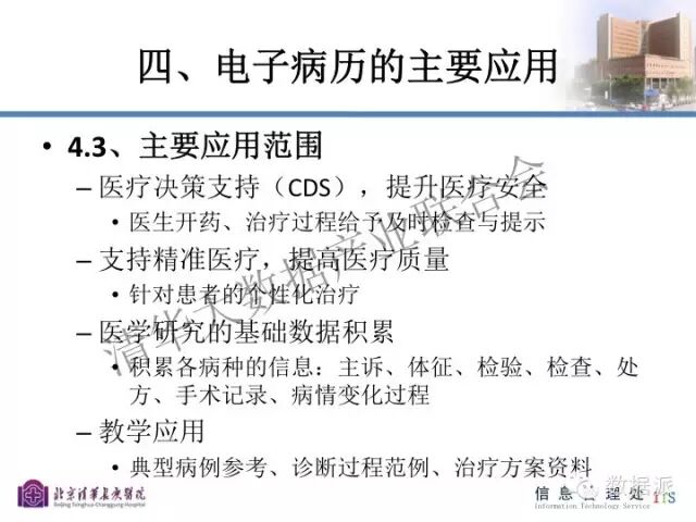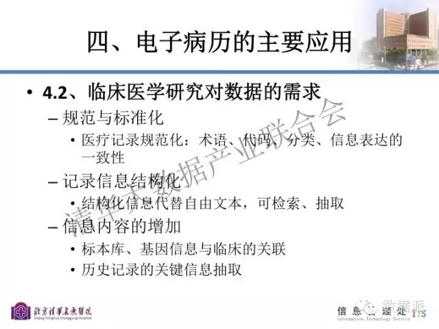 临床真正应用的时候,即使是医疗,不是科研,对标准化和结构化也是非常期待的,这个是想形成一个大数据,提升这个数据的质量,是我们当务之急要非常关注的,否则这个数据的应用度太低,你看着有一两亿条的数据,如果整合不到一起的话,真正能利用的只有很小的一部分。这是我们定一些规范,形成一些标准,形成一些机制,能够来解决这个问题。