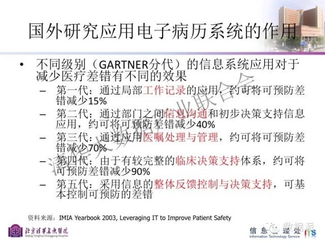 他们就分析,那五万人怎么避免呢?第一代,通过文档的记录,方便查,可以减少15%。如果做到第二代,信息之间可以多沟通,可以减少40%。如果做到第三代,实时的医嘱处理与管理,及时提醒,可以减少70%。