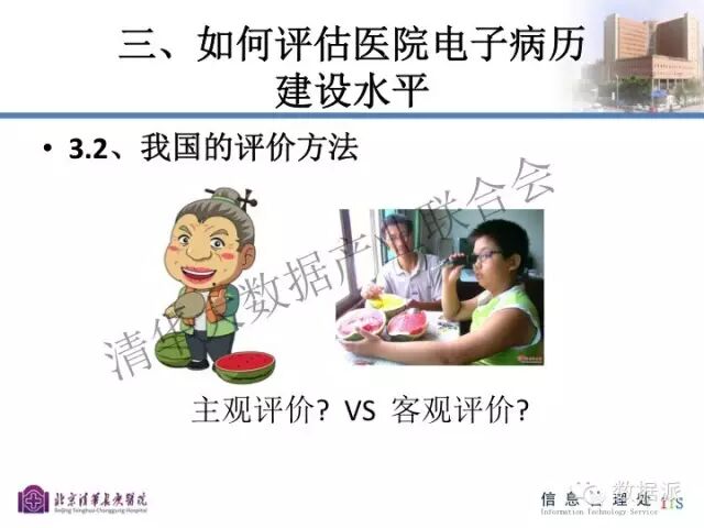 我们要是想评估国内的电子病历情况怎么办呢?过去都是靠问卷调查,这次希望采用一种客观的方法,别像王婆卖瓜那样,总说我的瓜甜,用甜度剂看看瓜的甜度到底是多少,是不是能够这么做。