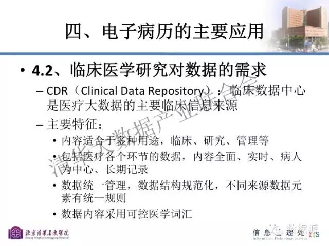现在还有一个期望,建成CDR,内容适用于多种用途、临床、研究、管理,但是要做到这个,医院绝大部分的人都是由专业的公司来做,也是期望大家能够投入精力,把这个做好。