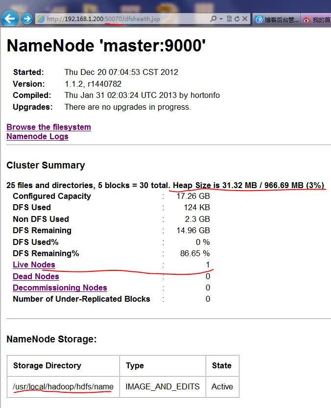 HDFS管理界面: