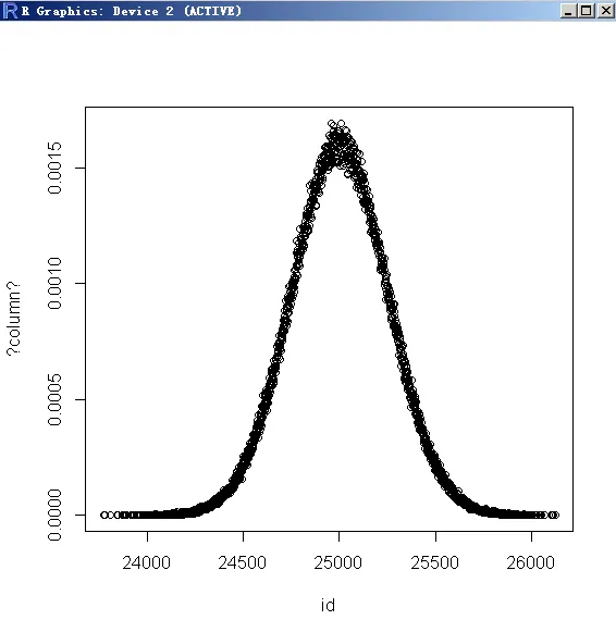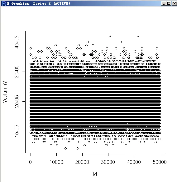 > drv <- dbDriver("PostgreSQL")> con <- dbConnect(drv, host='172.16.3.150', port='1922', dbname='postgres', user='postgres')> rs <- dbGetQuery(con, 'with t (cnt) as (select count(*) as cnt from test) select id,count(*)/(t.cnt::numeric) from test, t group by id,t.cnt')> plot(rs)