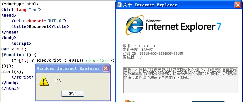 (!-[1,] ? execScript : eval)('var x = 123;');