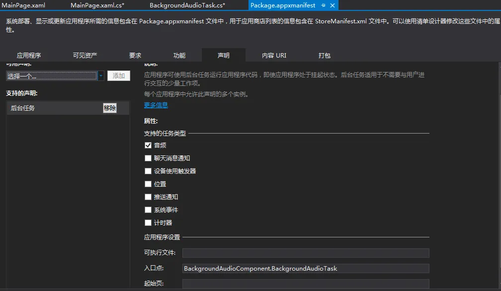 其中 BackgroundMediaPlayer.SendMessageToBackground 方法可以向后台音乐播放程序发送消息,可在后台程序中添加处理事件: