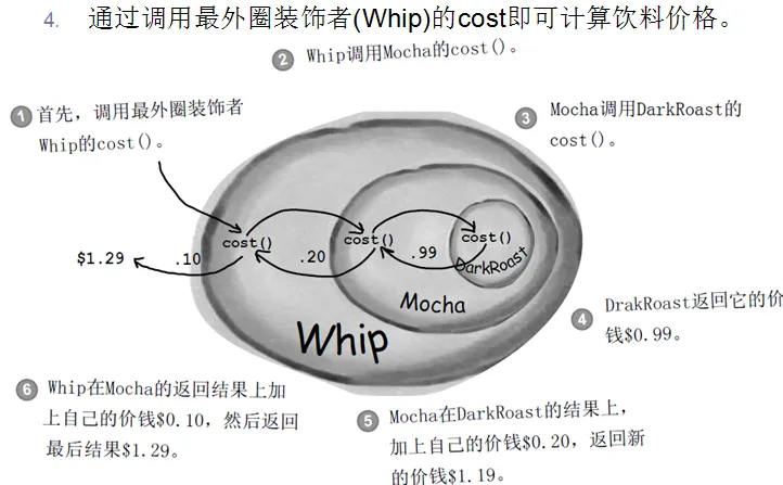 调用cost方法,并依赖委托(delegrate)将调料的价格加上去