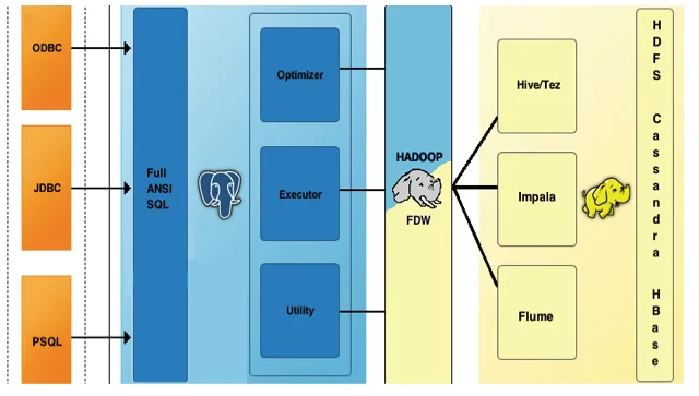 FDW是个万能插口,还可以双向操作对Oracle、SQLServer、MySQL、MongoDB、Redis、Excel、CVS等数据库或文件。小心用电安全,FDW是万能的接口,大象的小屁屁再大也是有限的,不要爆菊花!