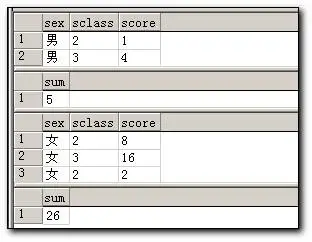 1 select sex,sclass,score 2 from student 3 order by sex 4 compute sum(score) by sex