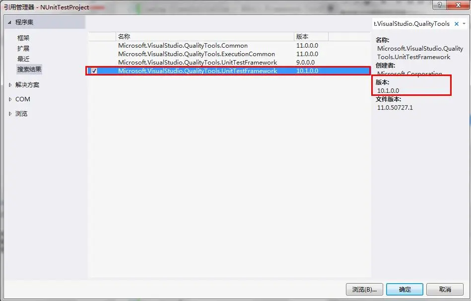 将DLL修改为:C:\Program Files\Microsoft Visual Studio 11.0\Common7\IDE\ReferenceAssemblies\v2.0\Microsoft.VisualStudio.QualityTools.UnitTestFramework.dll