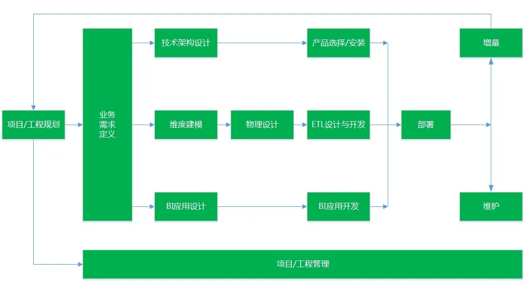 无论数据仓库技术如何变化,从RDBMS到NoSQL,从传统技术到大数据,其实只是实现技术手段的变化,数据仓库建设生命周期的模式从来都不曾真正颠覆性改变过。向前辈致敬。下图是The Kimball Lifecycle diagram中文版本: