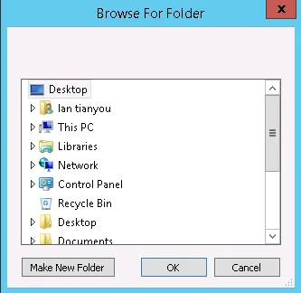 点击选择后会跳出选择的folder路径的界面,这个地方用到了FolderBrowserDialog控件: