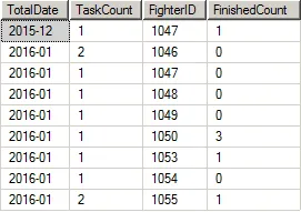 var idArr = user_FighterRepository.GetModel(i => i.ParentID == companyId).Select(i => i.UserID).ToList(); string para= string.Join(",", idArr); var linq = Db.Database.SqlQuery<FighterTaskTotalDTO>( @"SELECT CONVERT(CHAR(7), Day, 120) as TotalDate, COUNT(*) as TaskCount, FighterID , SUM(FinishedNumber) as FinishedCount FROM dbo.Count_Fighter_ByDay GROUP BY FighterID , CONVERT(CHAR(7), Day, 120) HAVING FighterID IN ("+para+")"); return linq.ToList();