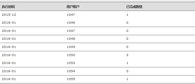 下面是一个比较复杂的统计,按月把某个用户的某个任务进行求和及求总数的统计,看一下代码