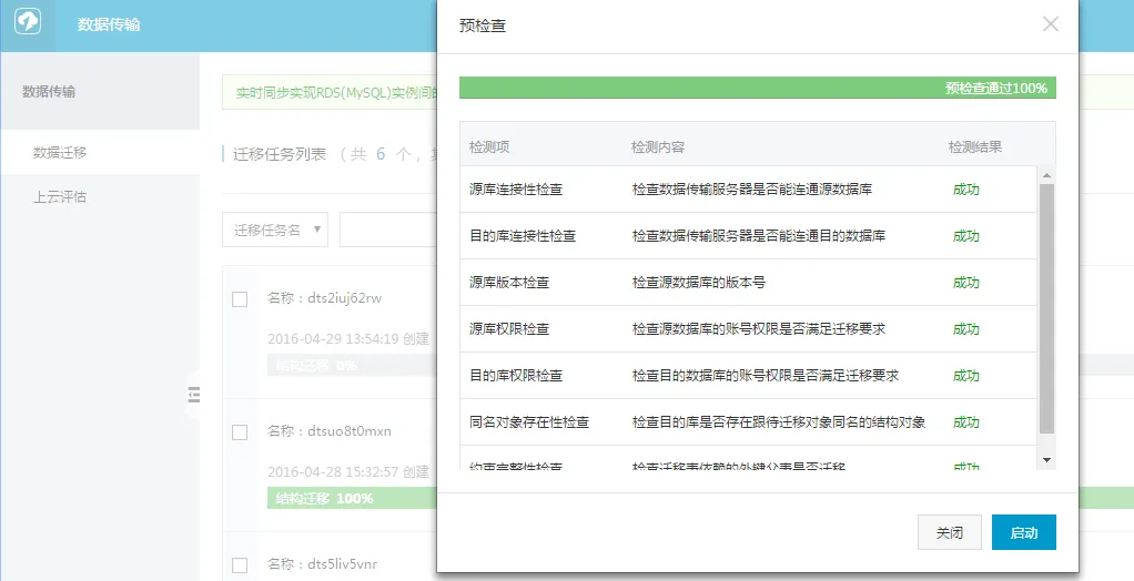 DTS的迁移过程十分简单,通过web可视化操作,更方便的实现数据库迁移。而且自带的预检查功能帮助你分析数据库迁移过程中的问题。