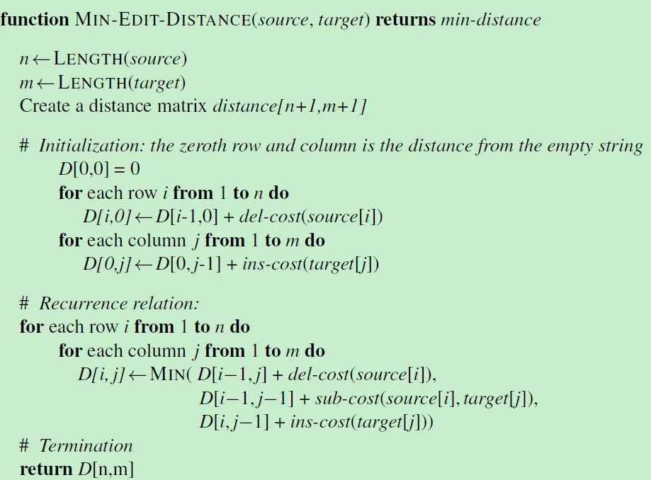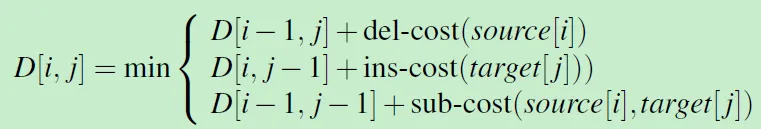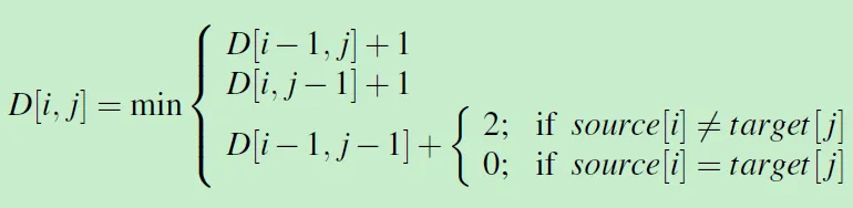 结合前面定义的 操作代价(删除和插入操作代价为1,替换操作为2),就是下面这个公式: