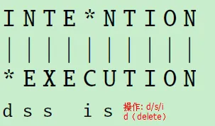 定义:插入操作的代价为1,删除操作的代价为1,替换操作的代价为2(称为: Levenshtein distance)。那么,"intention" 变成 "execution" 执行了三次替换,一次删除,一次插入。因此,总代价为8