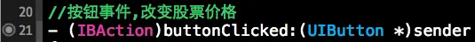 在控制器视图中添加一个按钮控件并关联事件IBAction,用来点击时改变股票的价格,需要的文件相关截图为: