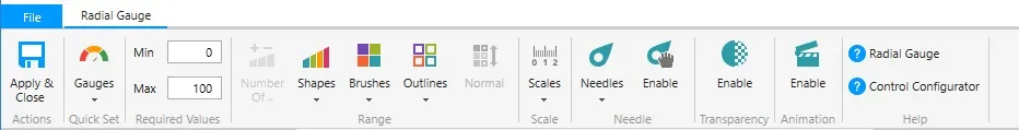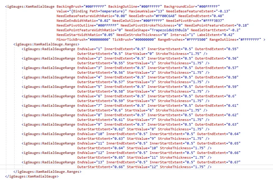 现在,我知道你的大脑现在正在渗出你的脑袋,但还有更多。 生成所有XAML后,更改背景颜色或其他属性(在本示例中,我将背景更改为LightBlue),然后选择XamRadialGauge并再次显示控件配置器。