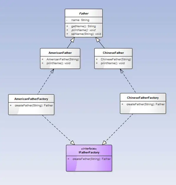 package com.pichen.dp.creationalpattern.factorymethod; public class Main { public static void main(String[] args) { IFatherFactory cnff = new ChineseFatherFactory(); Father cnFather = cnff.createFather("cn father"); cnFather.printName(); IFatherFactory usff = new AmericanFatherFactory(); Father usFather = usff.createFather("us father"); usFather.printName(); } }