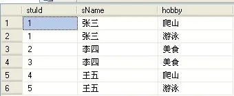 这时,我们的要求是查询学生表,显示所有学生的爱好的结果集,代码如下: