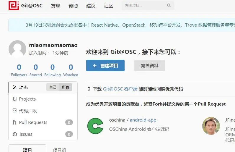 1.注册开源中国账号: