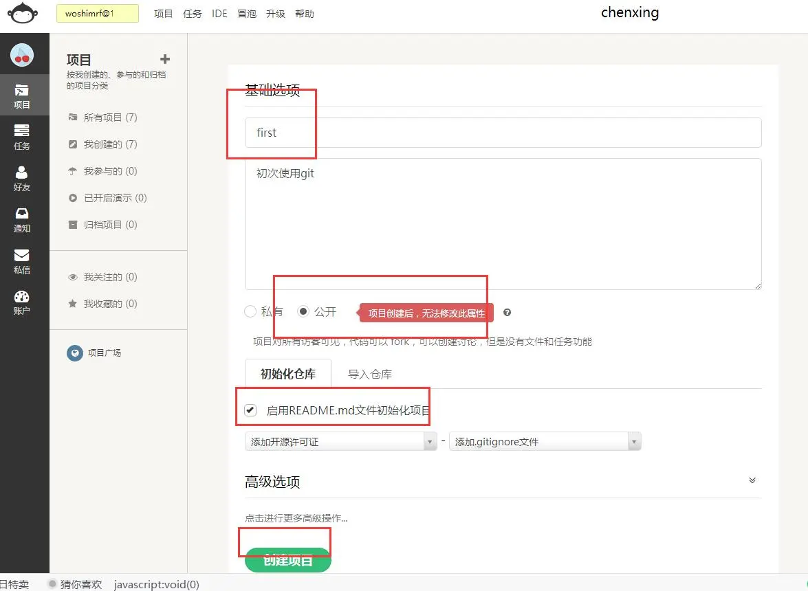 由于第一个,我们先创建成公开的。最后: