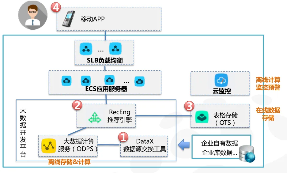下面我从厂商如何搭建模型的角度来谈谈对数加推荐引擎的理解。数加推荐引擎是阿里云数加在Max compute上提供的其中一项引擎技术,我们主要用于客户推荐。找客户做精准客户推荐,如何搭建场景我们通过四部分来分析。