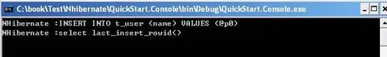 由于我们在配置文件在把Hibernate.Show_Sql设为了True所以在运行的时候我们可以在控制台看到NHibernate产生的SQL语句。