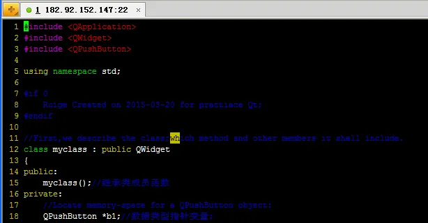 创建主部件QWidget QDialog类创建用户类,使用户类通过共有继承派生于QWidget类,创建新的构造函数,在其中调用成员函数(方法)来定义窗口外观