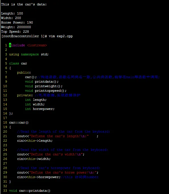 使用::说明函数属于哪个类;eg:void car::print*(),使用this访问当前类成员,this指针代表对象,在编写类定义时,你可能还不知道类的创建对象,