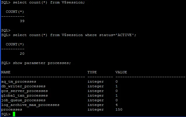 SQL> select count(*) from v$session;