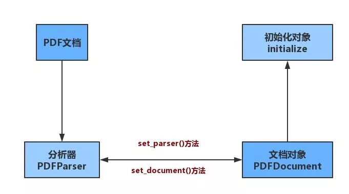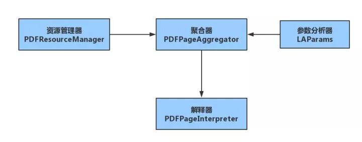 PDFParser(文档分析器),PDFDocument(文档对象),PDFResourceManager(资源管理器),PDFPageInterpreter(解释器),PDFPageAggregator(聚合器),LAParams(参数分析器)
