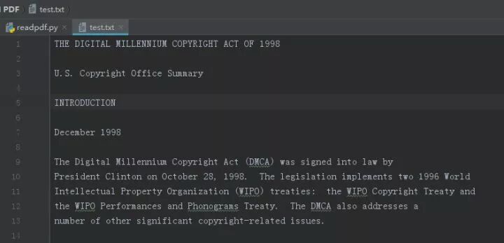 from pdfminer.pdfparser import PDFParser, PDFDocument from pdfminer.pdfinterp import PDFResourceManager, PDFPageInterpreter from pdfminer.layout import LAParams from pdfminer.converter import PDFPageAggregator from pdfminer.pdfinterp import PDFTextExtractionNotAllowed def parse(): #rb以二进制读模式打开本地pdf文件 fn = open('test.pdf','rb') #创建一个pdf文档分析器 parser = PDFParser() #创建一个PDF文档 doc = PDFDocument() #连接分析器 与文档对象 parser.set_document() doc.set_parser() # 提供初始化密码doc.initialize("lianxipython") # 如果没有密码 就创建一个空的字符串 doc.initialize("") # 检测文档是否提供txt转换,不提供就忽略 if not doc.is_extractable: raise PDFTextExtractionNotAllowed else: #创建PDf资源管理器 resource = PDFResourceManager() #创建一个PDF参数分析器 laparams = LAParams() #创建聚合器,用于读取文档的对象 device = PDFPageAggregator(resource,laparams=laparams) #创建解释器,对文档编码,解释成Python能够识别的格式 interpreter = PDFPageInterpreter(resource,device) # 循环遍历列表,每次处理一页的内容 # doc.get_pages() 获取page列表 for page in doc.get_pages(): #利用解释器的process_page()方法解析读取单独页数 interpreter.process_page(page) #使用聚合器get_result()方法获取内容 layout = device.get_result() #这里layout是一个LTPage对象,里面存放着这个page解析出的各种对象 for out in layout: #判断是否含有get_text()方法,获取我们想要的文字 if hasattr(out,"get_text"): print(out.get_text()) with open('test.txt','a') as f: f.write(out.get_text()+'\n') if __name__ == '__main__': parse()