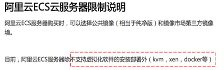 1,ECS内不支持Xen,KVM,但支持Docker