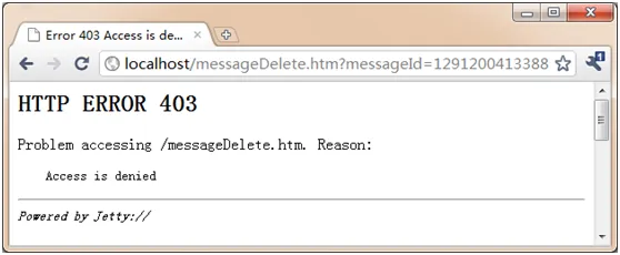 该试试删除功能了,当前用户角色是ROLE_USER,想删除肯定是不可以的了,那么会是怎么样的效果呢,点击Delete链接,看一下吧: